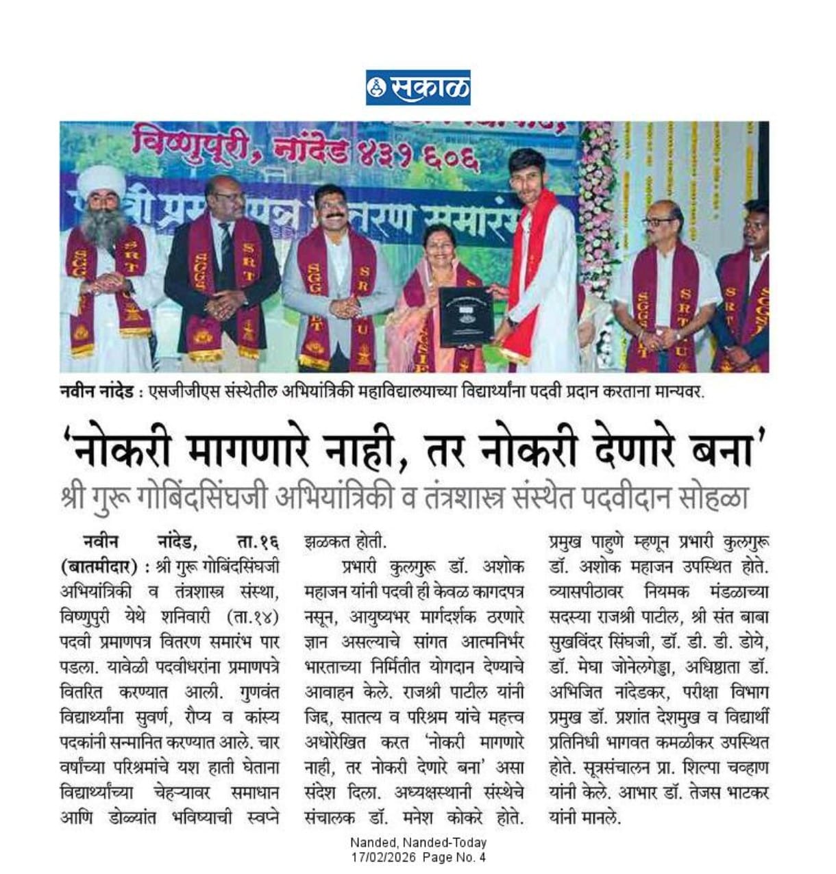 Vishnupuri, Nanded ( Maharashtra State), INDIA PIN 431606