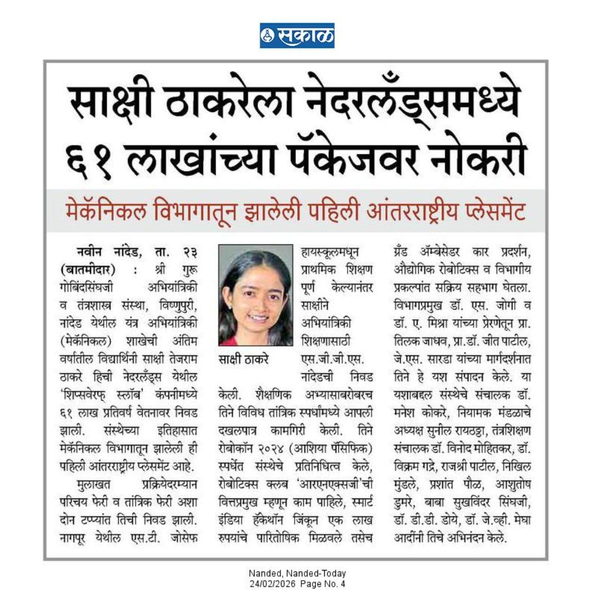 Placement at SGGS